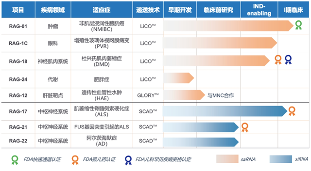 “RAG-17的开发过程让团队在CMC、临床前、IND申报等方面积累了宝贵的实战经验,这些经验又反过来有力地支持了RAG-01的顺利推进。”李龙承进一步表示,“从这点来说,我们也是全球唯一一家同时将小激活RNA和小干扰RNA两种技术路线都成功推向临床阶段的公司。”
